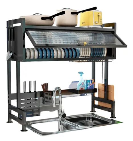 NUEVO ESCURRIDOR Y ORGANIZADOR DE PLATOS DE ACERO INOXIDABLE CON TAPA DE POLICARBONATO